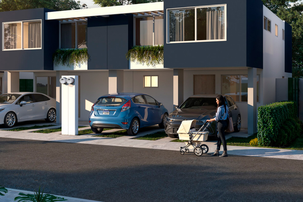 - Azalea: 134 m² de construcción en dos niveles. Cuenta con sala, cocina, comedor, baño de visitas, área de lavandería, jardín posterior y dos parqueos frontales en el primer nivel. En el segundo nivel incluye sala familiar, habitación principal con baño y dos habitaciones secundarias.